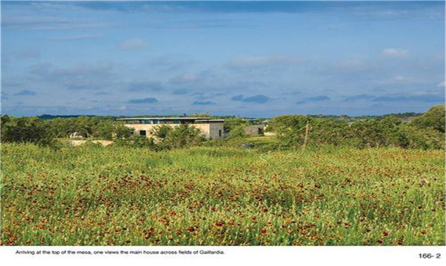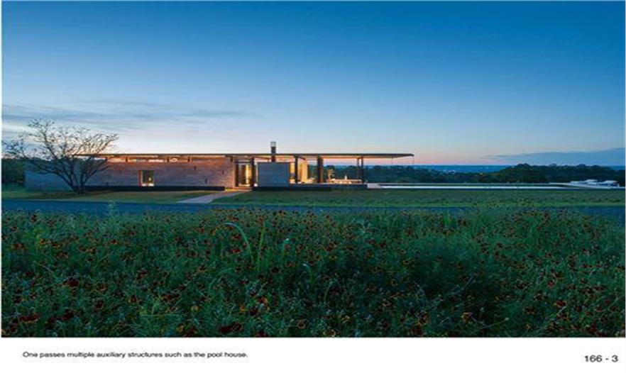 該家族大院位于德克薩斯州中部山區(qū)8公頃臺(tái)地的上面,其包括4個(gè)結(jié)構(gòu)的工程和半英里的車(chē)道,由景觀設(shè)計(jì)師和建造師以及地產(chǎn)擁有者合作完成。從一開(kāi)始,項(xiàng)目的目標(biāo)是尊重本土景觀和地形,謹(jǐn)慎地保護(hù)每一棵樹(shù)和本土生態(tài)區(qū)。