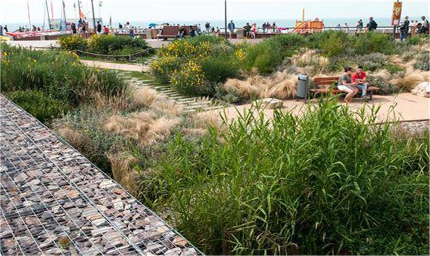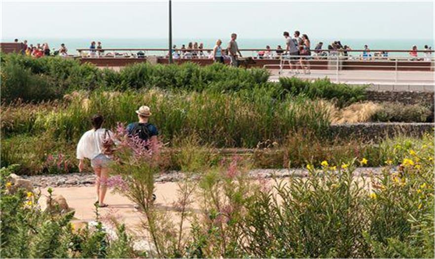 大型的木甲板、海岸線的出現(xiàn),增加了該地區(qū)的樂趣以及提高了日常生活的質(zhì)量。這里還有圓形和舒適的長(zhǎng)凳,還可以在碼頭上觀賞到海面景象、運(yùn)動(dòng)場(chǎng)以及孩子們的戲水池。