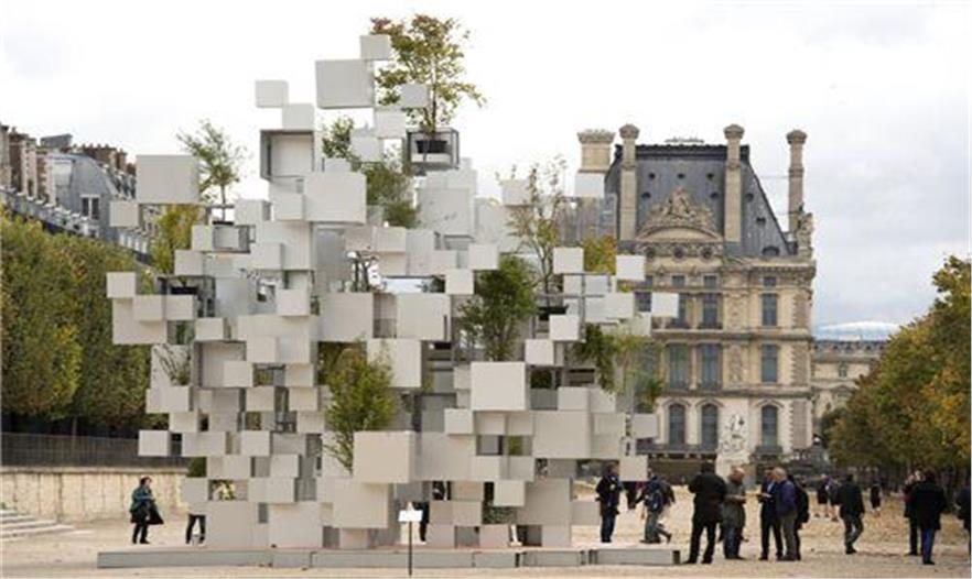 就在近日,藤本壯介在巴黎杜伊勒里宮FIAC藝術(shù)博覽會(huì)上展出了他的最新建筑雕塑作品“nomadic”house,意為“游牧房子”。這個(gè)看起來零零散散的雕塑是用上千個(gè)金屬立方體懸浮在鋁制的金屬框架上組成,作品上的角落里還安裝有巴黎藝術(shù)畫廊的許多裝有植物和小型樹木的堆疊盒,把這一人工建筑努力融入自然空間。照明設(shè)藝術(shù)家Patrick Rimoux在這些抽象的帶有數(shù)字的立方體中置入燈光,使諸多小立方體的浮動(dòng)在燈光和陰影下創(chuàng)建了一個(gè)節(jié)奏感極強(qiáng)的新空間,最重要的特點(diǎn)是它的可拆卸和耐用性,這就是為什么叫它“游牧房子”的原因了,而作品的展覽也將持續(xù)到今年的11月底結(jié)束。