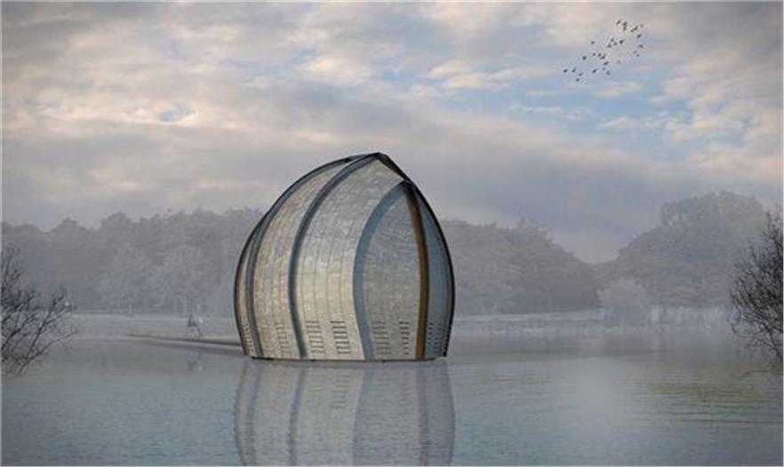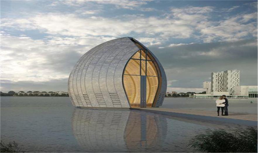 荷蘭阿爾梅勒市選擇了建造師René van Zuuk設(shè)計的小型的弧形教堂,建在Weerwater 河的表面上。