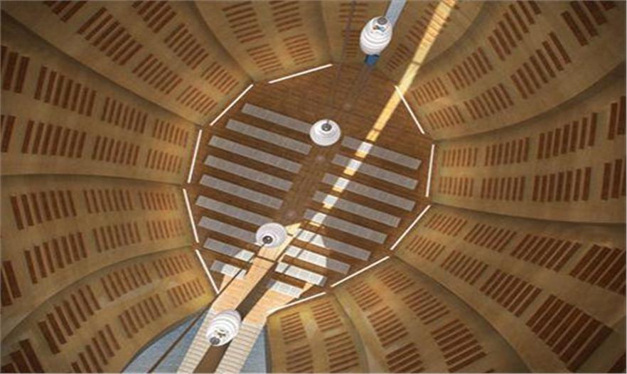 建筑將用泡沫建造,用CNC機械切割剖面。外表用鋅覆蓋,內(nèi)部用膠合板安裝。