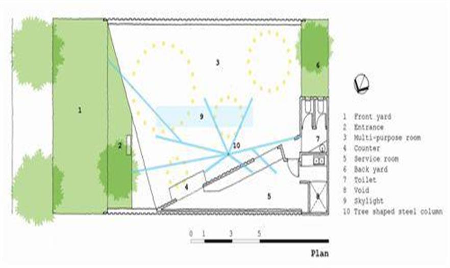 這座小建筑位于越南胡志明市,是一座多功能用處的建筑,a21studio采用了越南傳統(tǒng)的工作模式。由于項(xiàng)目預(yù)算緊張,建造所用的鋼材來(lái)自業(yè)主方以往項(xiàng)目殘留下來(lái)的剩料。然而經(jīng)過(guò)設(shè)計(jì)加工其犯二變得有趣,好像室內(nèi)的一顆大樹,通過(guò)其枝干支撐著整個(gè)屋頂。