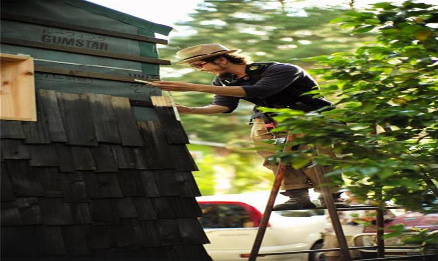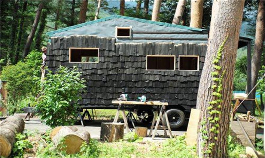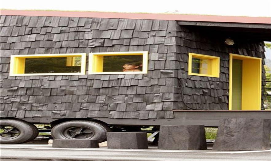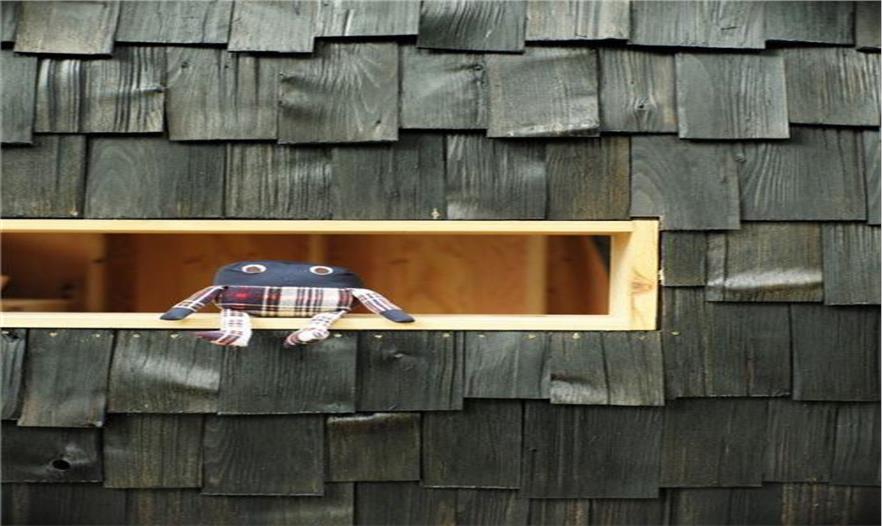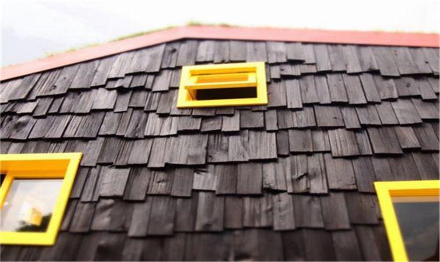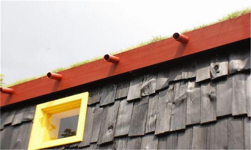 小屋的墻壁是涂黑的木片模擬的木瓦的效果,看上去像一座披著樹皮的小房子。而其屋頂也做了綠化處理,這樣在春暖花開的季節(jié)上面會(huì)開滿了小花,還能招引來不少的蜜蜂。