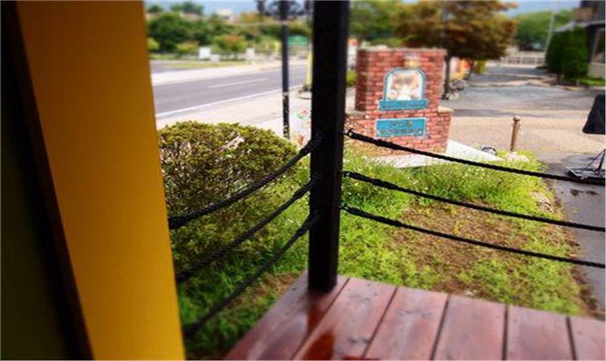 入口處的幾塊木樁成為了進(jìn)入小屋的臺(tái)階,涂成黃色的窗框與四周的花朵顏色相當(dāng)協(xié)調(diào),最后點(diǎn)綴上長頭發(fā)哥哥和酷酷的涂鴉大叔以及可愛的小姑娘~嗯,這里就是一篇童話故事的開始,不是嗎?