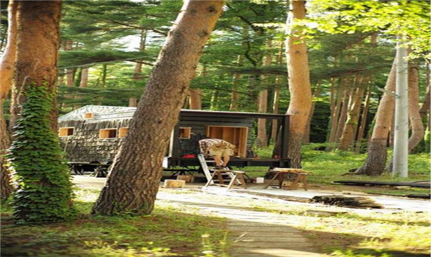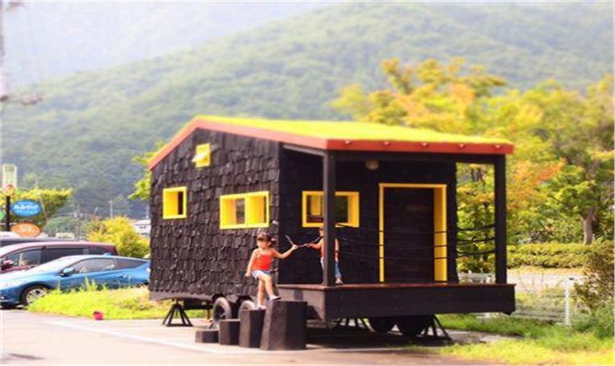 這是一座位于日本山梨縣河口湖附近的充滿童話感的售賣亭,業(yè)主是當(dāng)?shù)氐腒onohana博物館(Konohana Museum )。售賣亭是可移動(dòng)的,出售咖啡軟飲料等食品,供給在這里下車去湖邊山腳下游玩的游客們。