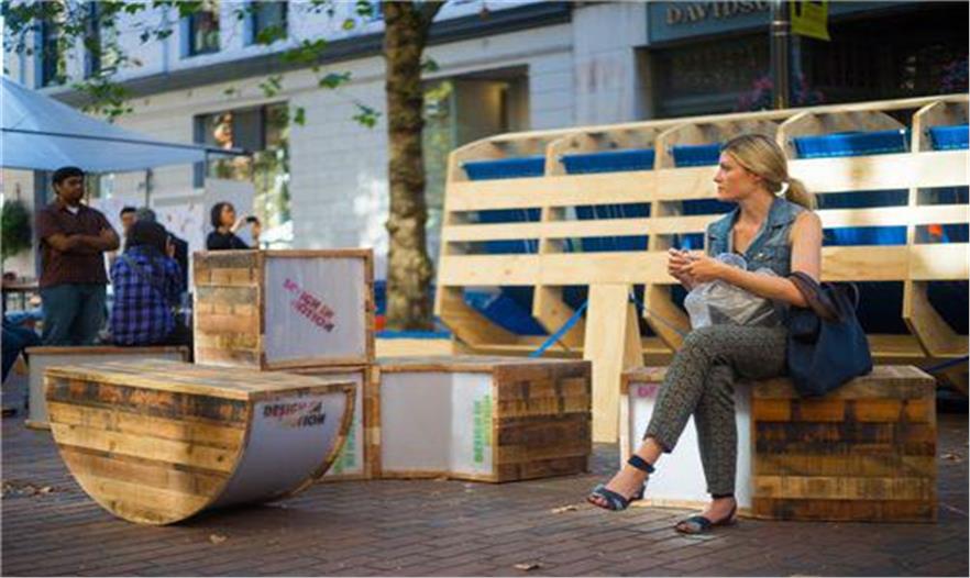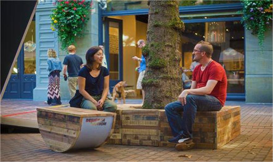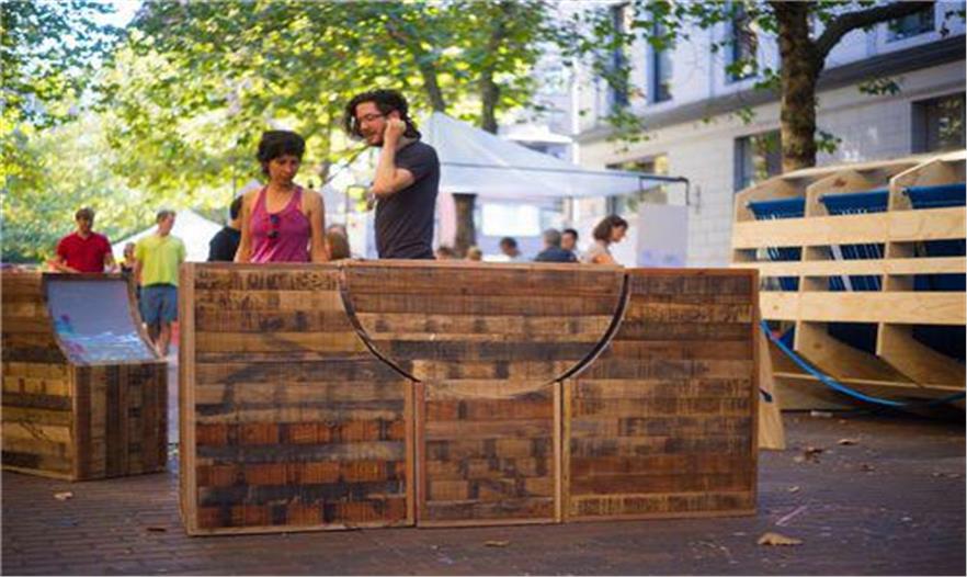 西雅圖市中心被改造成了一個適合各個年齡階段人群的運動場,帶有在建筑環(huán)境中有互動效果的街道設(shè)備。8個可移動的模塊結(jié)合起來形成無數(shù)個形狀,為十幾個人設(shè)置座位或是玩耍的空間。這個項目是由西雅圖的LMN建筑事務(wù)所帶領(lǐng)學(xué)生的跨學(xué)科團(tuán)隊、專業(yè)人士、設(shè)計師、制造商和承包商一起建造的,目的在于激發(fā)市中心平凡街道的活力。該項目也是為西雅圖設(shè)計節(jié)建造的,為會議、游玩和約會提供了臨時場所。