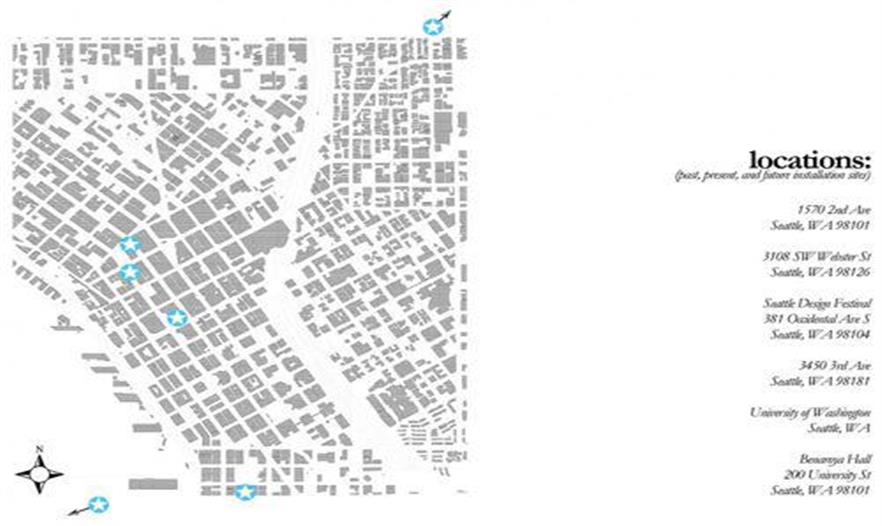 該項目起源于為使用者提供在公共環(huán)境下構(gòu)建自己空間機會的愿望。簡單、基本的木塊能構(gòu)成無數(shù)的形狀,全由使用者決定,這樣在基本水平上提供一個互動體驗。這個街道設(shè)備符合2014年西雅圖設(shè)計節(jié)的主題“Design in Motion”,還為滿足使用者的需求提供了這個公共雕塑。根據(jù)建造者,這個項目“通過建造可移動、可變化和多用途的物體,來探索街道生活的瞬變現(xiàn)象和節(jié)日的時間性。”