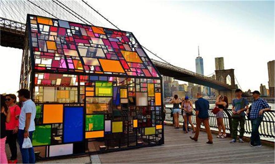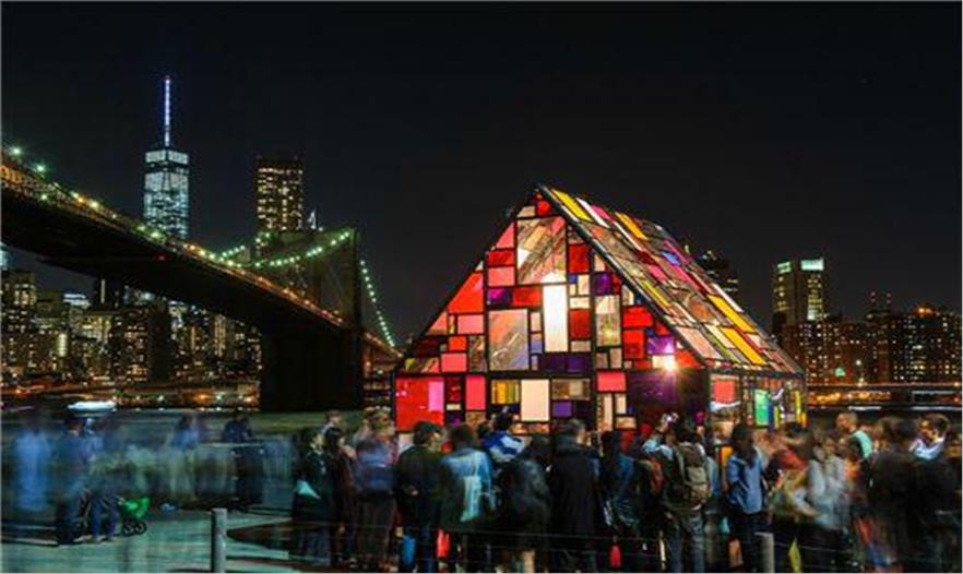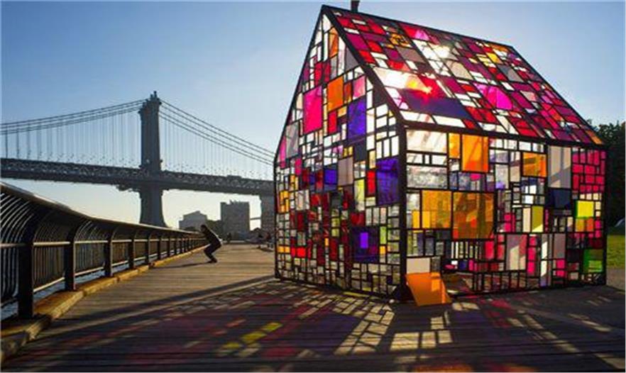 在布魯克林藝術(shù)家湯姆·富因設(shè)計的樹脂玻璃的水塔面前,我們眼花繚亂?,F(xiàn)在他又設(shè)計了一個相似的新裝置。藝術(shù)家最近用回收來的五彩丙烯塑料板建造了一個漂亮的房屋,作為今年登波藝術(shù)節(jié)的一部分。這個裝置名為Kolonihavehus,最近展示在布魯克林大橋公園上。