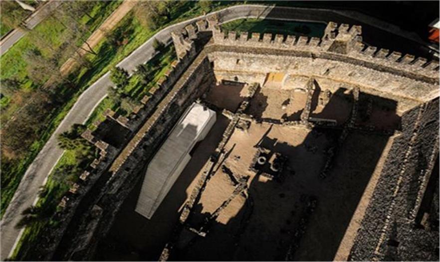 Pombal古堡游客中心的設(shè)計追求著歷史與現(xiàn)實(shí)所共存的模糊空間:它或許只是與古堡融為一體的龐大的石灰?guī)r,或許只是一個和藹可親的流浪者,又或許只是一個尋找家的陌生人的容身之處。