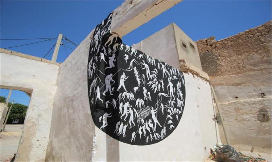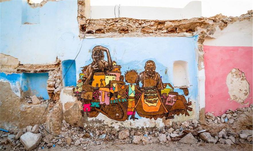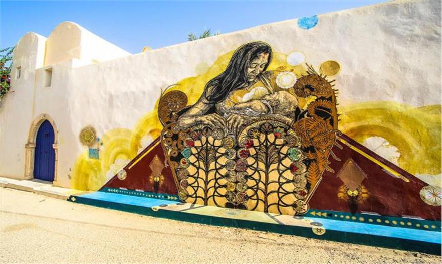 來(lái)自30多個(gè)國(guó)家的創(chuàng)意人員齊聚突尼斯的吉爾巴島參與到“djerbahood”項(xiàng)目中,這個(gè)項(xiàng)目已經(jīng)把吉爾巴島這個(gè)充滿歷史感的小鎮(zhèn)成功地轉(zhuǎn)變?yōu)橐粋€(gè)充滿生機(jī)、活力的露天藝術(shù)館。150位街頭藝術(shù)家把他們的作品留在了這個(gè)古老小鎮(zhèn)的墻上、門上,整個(gè)小鎮(zhèn)遍布著或大或小的壁畫,可以讓本地居民或者外地游客盡情的體驗(yàn)和享受這樣的藝術(shù)。創(chuàng)作出的150多幅街頭藝術(shù)品,以街頭的墻面為背景,這當(dāng)中有章魚、民族少女等,制作出來(lái)的圖像和墻面背景結(jié)合得十分緊密,可謂將藝術(shù)的魅力發(fā)揮的淋漓盡致。這個(gè)藝術(shù)展是由巴黎藝術(shù)家Galerie Itinerrance提出的項(xiàng)目,而后還會(huì)邀請(qǐng)世界各地的著名的藝術(shù)家前往非洲北部的另一個(gè)小鎮(zhèn),并且允許團(tuán)隊(duì)創(chuàng)作的出現(xiàn),這個(gè)提議引起熱烈的反響。