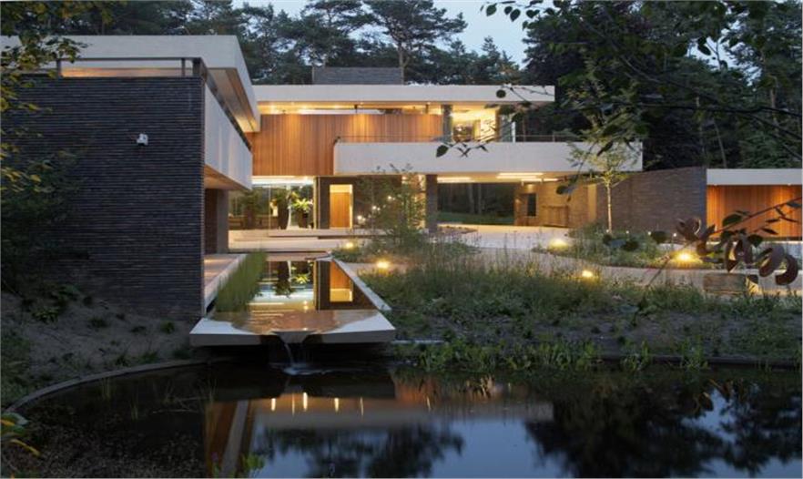 這個位于松林里面,有著6米高差的場地在荷蘭是非常獨(dú)特的。別墅的主人也意識到這點(diǎn),讓我們設(shè)計一座能與場地環(huán)境融合的“活”房子。別墅的主人建議參考三個設(shè)計師的作品,每一個都有著他們自己獨(dú)特的風(fēng)格。賴特的自然性、密斯•凡•德•羅的開放性和卒姆托的感官重要性。懷著謙虛的學(xué)習(xí)態(tài)度,我們接受了這個任務(wù)。