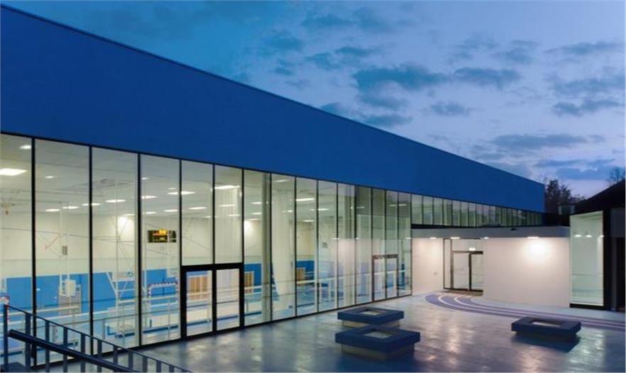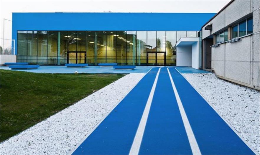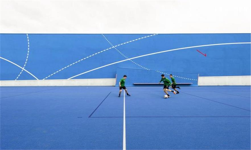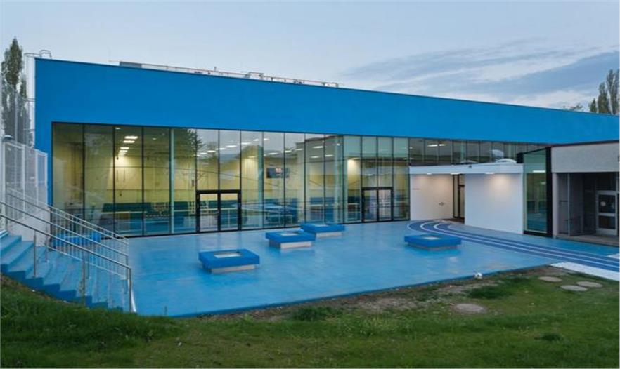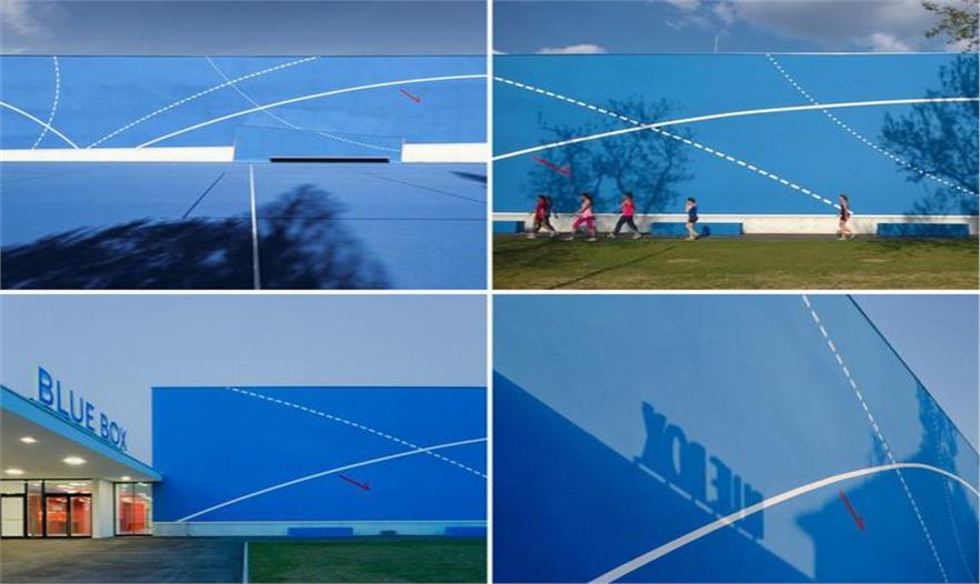 現有的體育與學校建筑綜合體作為一個獨立的建筑,外觀特色十分鮮明。藍盒子體育館由三部分組成,是整個綜合體內的一個新增模塊。