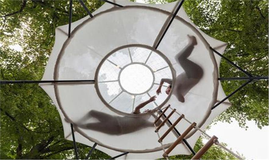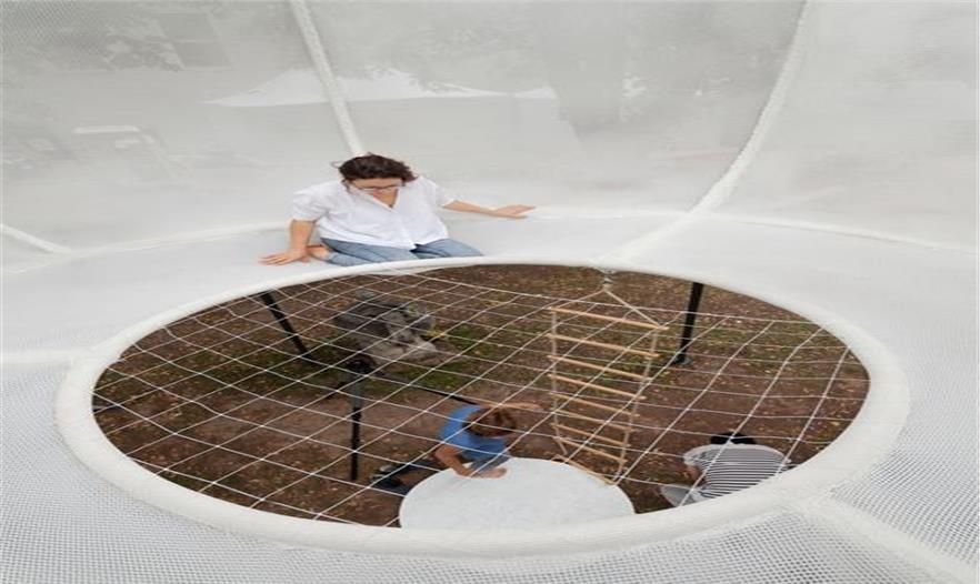 這個裝置的大部分被白網(wǎng)覆蓋,讓游客能夠躺在入口處,就好像吊床一樣。