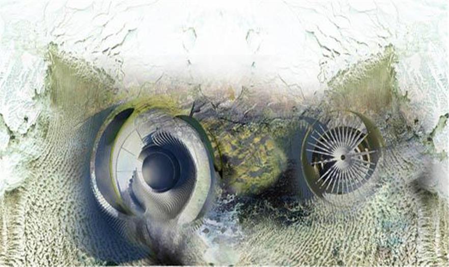 內(nèi)層殼體是一個(gè)輕量級(jí)的非鐵金屬硬殼結(jié)構(gòu),能夠在潮汐涌入的時(shí)候在外部殼體中漂浮。休息室僅由三個(gè)模塊組成,便于根據(jù)住宅的功能需求進(jìn)行拆卸。同時(shí),外表面是由水泥覆蓋的簡(jiǎn)化水流運(yùn)輸系統(tǒng)。表皮內(nèi)有著的一系列的水渠道,能產(chǎn)生漩渦效果。水流圍繞著體量旋轉(zhuǎn),能聚集更多的潮汐能量。