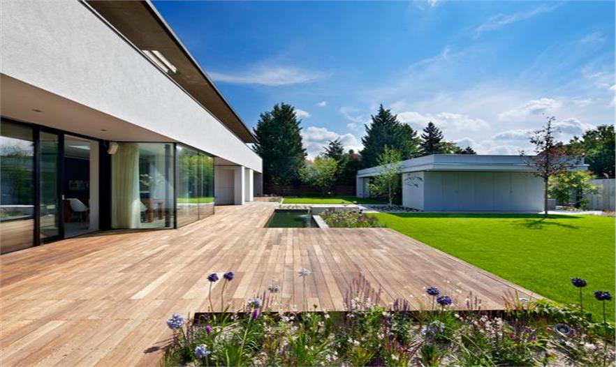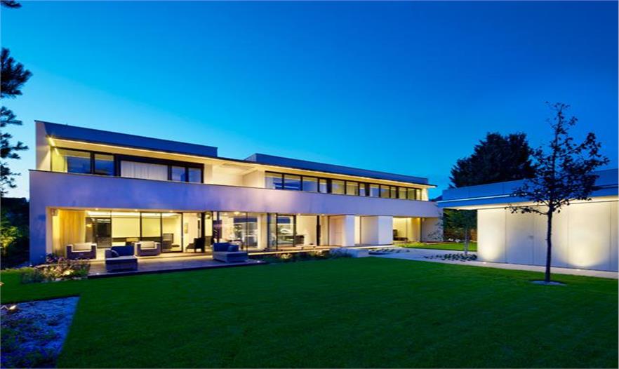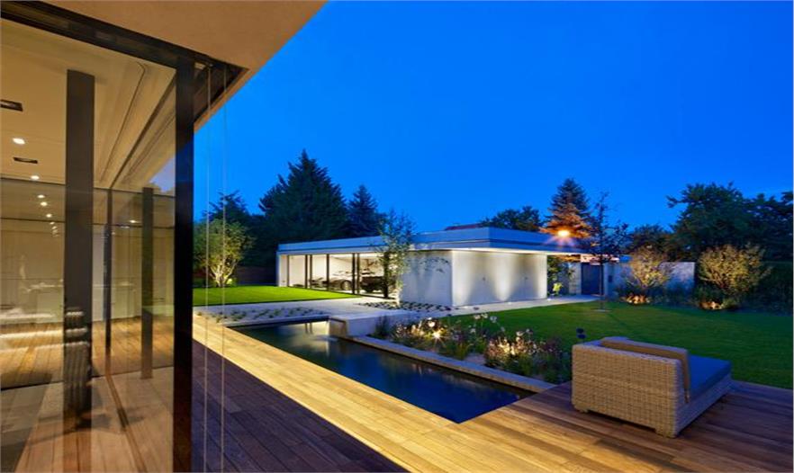 別墅的南立面設(shè)有巨大的玻璃幕墻,直接開(kāi)放向花園,為室內(nèi)提供充足的光線,而在炎熱的季節(jié),屋檐和二層的懸挑結(jié)構(gòu)則可提供蔭庇。一個(gè)大型的天窗從空間上將主臥和建筑側(cè)翼的兒童房分開(kāi),同時(shí)以便室外陽(yáng)光通過(guò)頂部進(jìn)入到首層。為了給業(yè)主帶來(lái)更多的便利性,建筑通過(guò)集成智能技術(shù)允許iPhone和iPad控制照明設(shè)備,安保和視聽(tīng)系統(tǒng)。別墅還設(shè)有一個(gè)記錄室內(nèi)外環(huán)境數(shù)據(jù)的氣象站,用于自動(dòng)識(shí)別并優(yōu)化室內(nèi)環(huán)境和能耗功效。