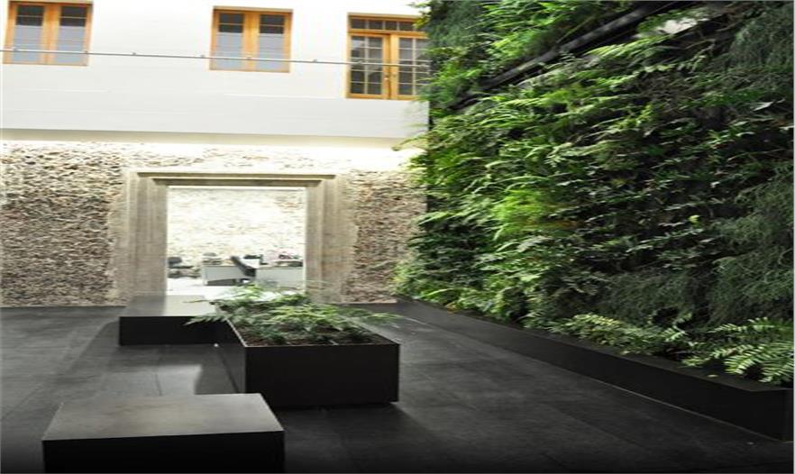這個庭院位于古老的18世紀房屋的第一層,之后轉(zhuǎn)變成服裝零售公司“Almacenes García”的辦公室。它之前是個噴泉,現(xiàn)在被當作是日復(fù)一日匆忙工作的逃離地,成為一種禪意花園。