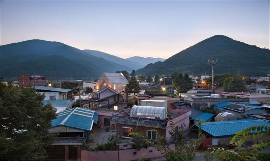 在當(dāng)下,教會(huì)、巨大的天主教教堂和超現(xiàn)代的寺廟鋪天蓋地。而蔚山Inbo天主教堂的設(shè)計(jì)忠于其應(yīng)有的功能。設(shè)計(jì)師對(duì)這個(gè)小教堂的真誠(chéng)期望就是新老建筑可以和諧地共存,使其成為這個(gè)小鎮(zhèn)的社區(qū)互動(dòng)空間。