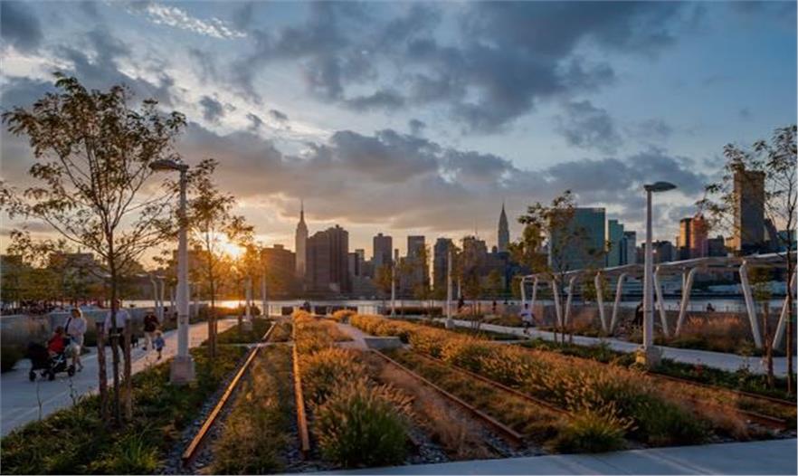 這個地區(qū)三面環(huán)水,能觀賞東河上曼哈頓天際線的壯觀景象。200年前,這個地區(qū)是一系列的濕地,但最后被工廠取代??蛻粢笤O計師通過使用景觀設計、建造和工程將這兩方面結合起來建造一個空間,使用可持續(xù)性設計來模糊基礎設施和景觀之間的界限。