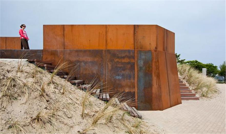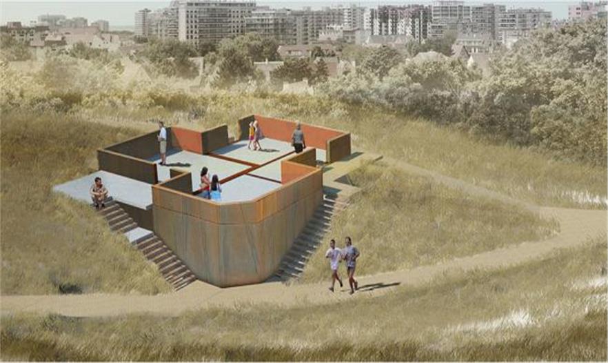 OMGEVING事務(wù)所被選擇去準(zhǔn)備復(fù)興計(jì)劃,以及被委托去改造花園周?chē)羌?jí)別墅的廢墟,建造一個(gè)新形式的花園。雖然知曉了該地區(qū)的歷史和過(guò)去的痕跡,但問(wèn)題是是否恢復(fù)古老的別墅或是接受改變,尋求新的發(fā)展。這個(gè)使人為難的問(wèn)題給了這個(gè)項(xiàng)目的靈感。不重新建造別墅,而是集中于別墅的殘余,建造一個(gè)新的且具有現(xiàn)代風(fēng)格的存在形式。一些磚塊包裹在一層氧化鐵上,一方面突出了新的存在形式,另一方面加強(qiáng)了古老別墅的存在。