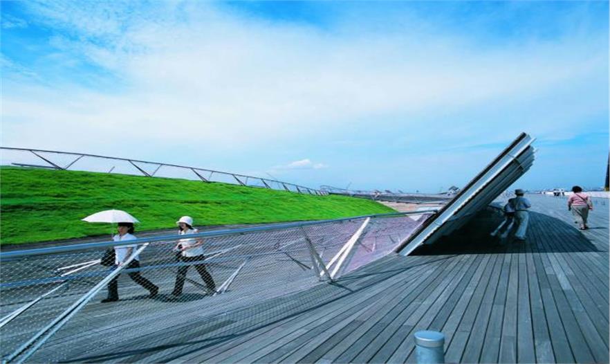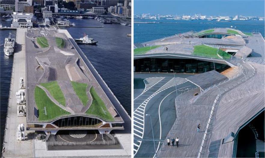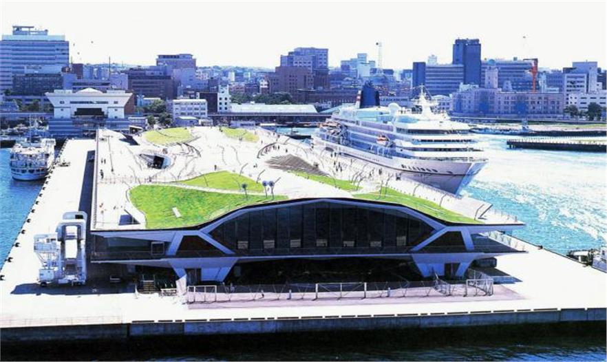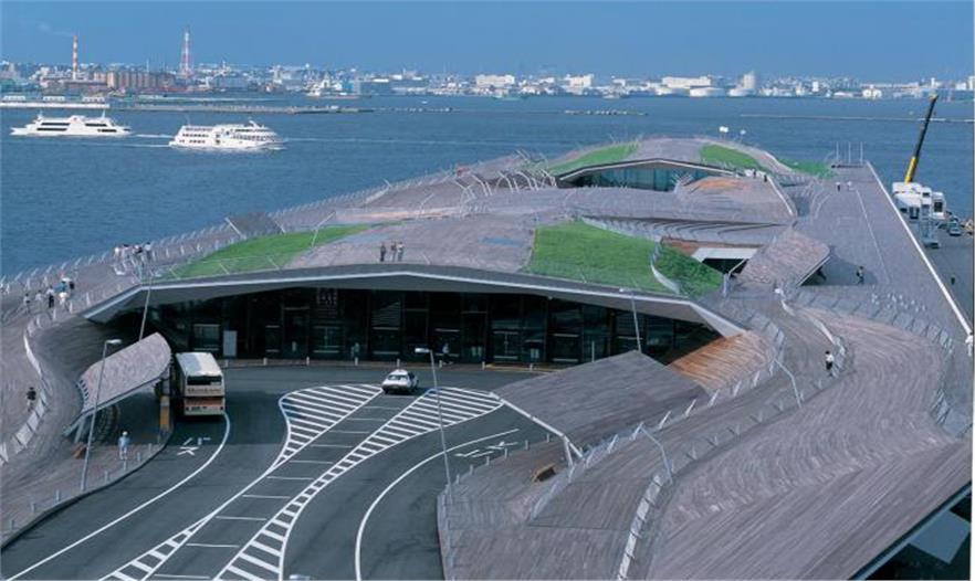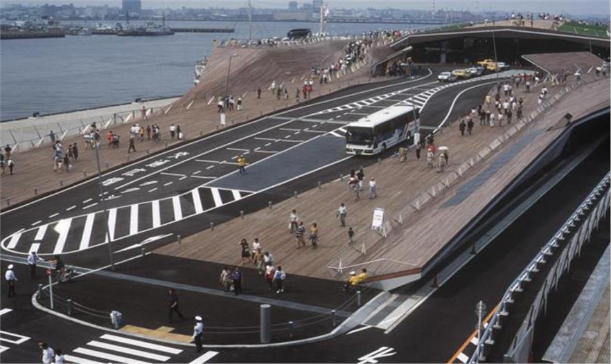 橫濱國際客運中心的接待處是整個項目最重要的組成部分,其設計充滿了創(chuàng)造性的建筑方法和社會意識的思考,由Foreign Office Architects (FOA)事務所于1995年設計。充滿未來感的客運中心體現(xiàn)了交通基礎設施建設的新類型。其前衛(wèi)、高科技的設計探索了建筑形式的新前沿,同時引發(fā)了對大型項目之于豐富城市公共空間的社會責任的激烈討論。