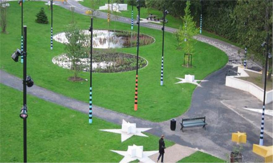 這些年來,Københavns的西北區(qū)擺脫了污染社區(qū)以及有很大社會和經(jīng)濟問題的壞名聲。SLA事務所設計了長期的居民參與程序,讓當?shù)厣鐓^(qū)居民參與設計過程,在與當?shù)鼐用衩芮泻献鞯那闆r下,建造了這個魔幻且有趣的公園,滿足了居民的所有需求:燈光、安全、自然以及冒險景觀的完美結合,建造出了這個完全獨特和有特色的社區(qū)公園。SLA因為這個公園特制的燈光設計獲得了2010年丹麥燈光設計獎。