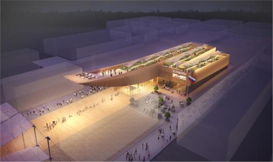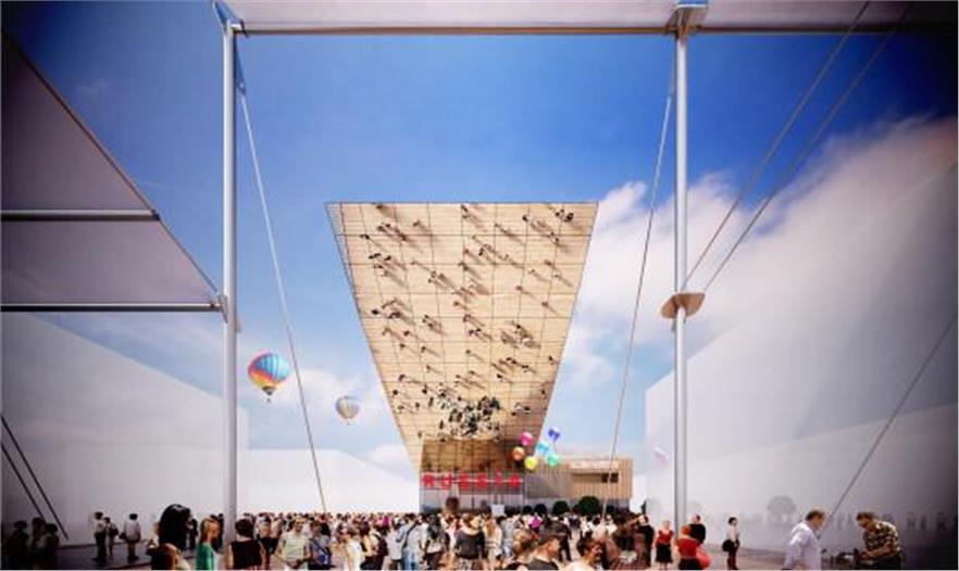 在設計中最主要的挑戰(zhàn)是創(chuàng)造一個與當代建筑發(fā)展趨勢有共鳴的非凡的建筑。”展館總建筑師Sergei Tchoban說,“我們的主要出發(fā)點是將一個簡單但令人難忘的建筑外形與可持續(xù)、生態(tài)無害材料構建的外觀相結合。但是童謠重要的一點是在設計中注入俄羅斯文化的精髓。”