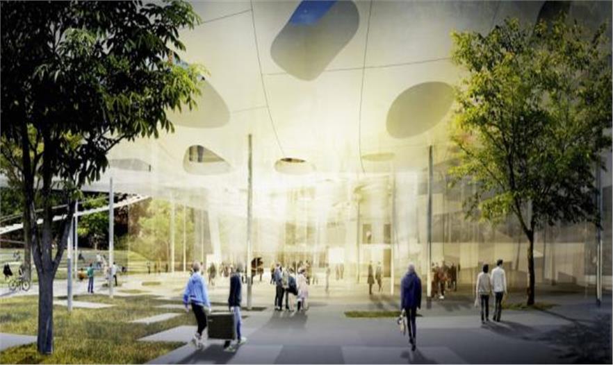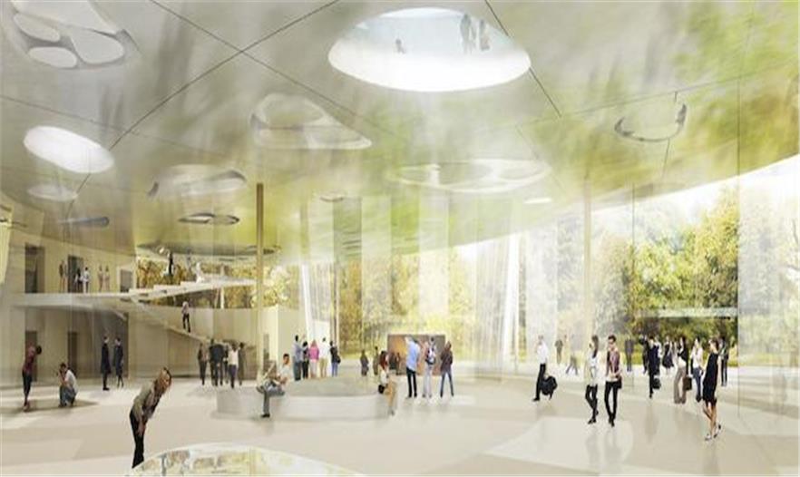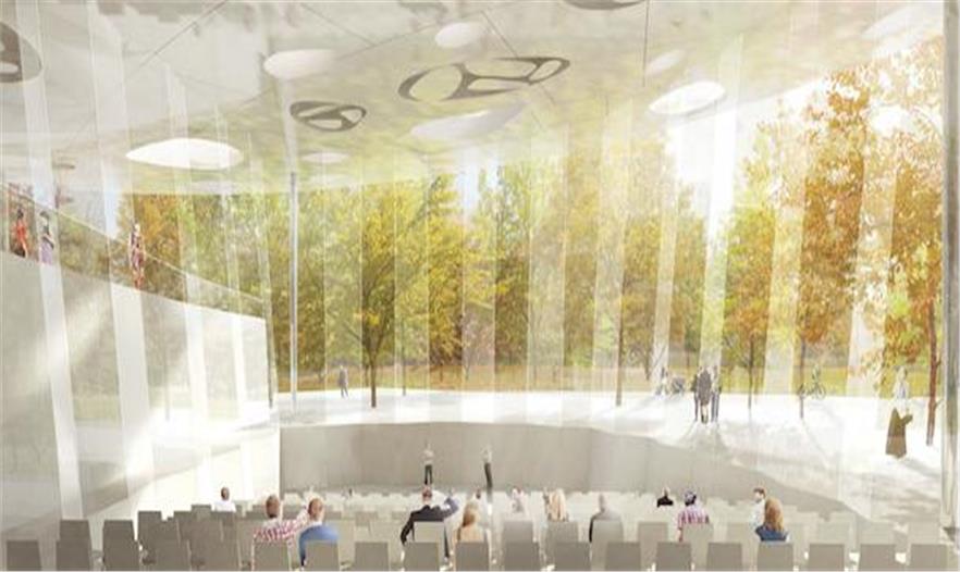 該競賽的獲獎(jiǎng)方案是通過匿名選舉而來,藤本壯介被選定負(fù)責(zé)匈牙利音樂大廳的設(shè)計(jì),其作品的設(shè)計(jì)靈感來自于起伏的聲波,建筑幕墻全部采用透明玻璃,非常獨(dú)特的帶孔的“智能屋頂”仿佛懸浮在建筑上面,整體的設(shè)計(jì)為內(nèi)部帶來了非常棒的通風(fēng)和采光效果。