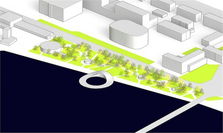 該項目分三部分:公園的規(guī)劃,陸上的建筑物,以及漂浮在水中的亭子,這些區(qū)域被清晰的劃分,但它們相互之間又有者很密切的聯(lián)系。此公園的設(shè)計遵循一個簡單但很高效的組織手法:保留現(xiàn)存的樹木植被并且種植更多的綠色植物。設(shè)計師在場地和海水的邊界處打造了一個“波羅的圓環(huán)”(baltic circle),它綜合了陸地和海洋項目設(shè)計的特色,演繹了從陸地到海洋的空間轉(zhuǎn)變,以作為這座城市的標(biāo)志性建筑。