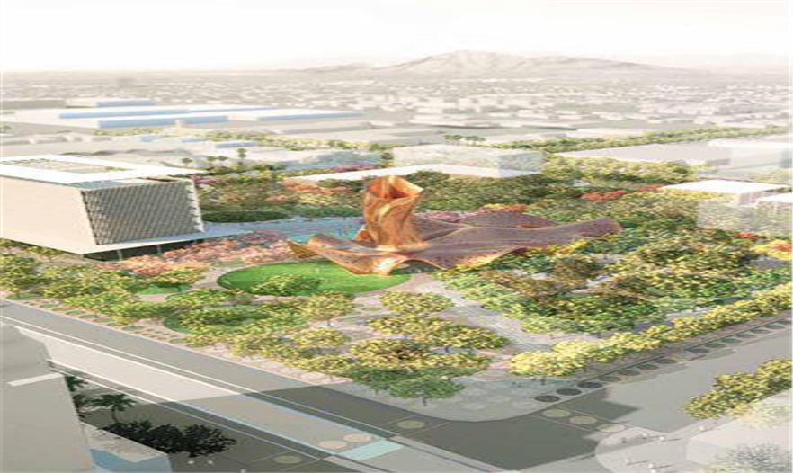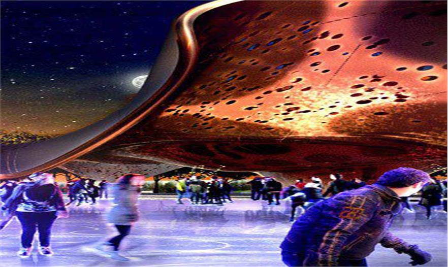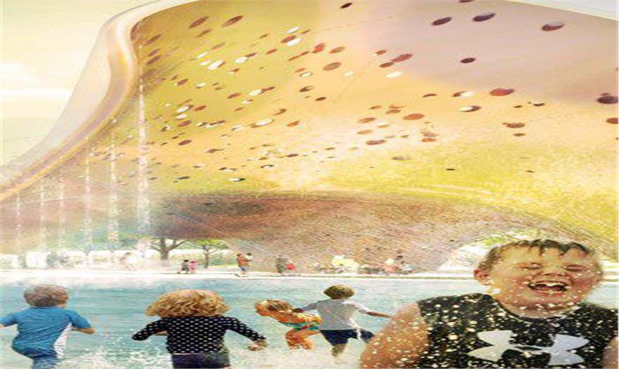 這個新空間以獨特的銅質(zhì)遮陽結構為特色,帶有“蒸發(fā)式冷卻塔”,這樣在更多水分以及持續(xù)冷風的情況下減少干燥、炎熱的氣候。相似的建筑已經(jīng)顯示出空氣氣溫會下降15—20度。這個地表也可用作表演和電影放映的投影儀。