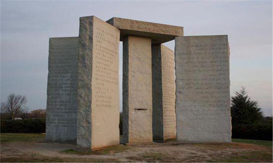 佐治亞州石陣坐落于美國佐治亞州的埃爾伯特縣,呈星星狀,上面刻有人類在大動亂之后所應遵循的守則,以重塑人道。石陣上的內(nèi)容由四種古老的語言書寫而成——古希臘文字、古巴比倫文字、古埃及象形文字和古梵文。這座非凡的建筑在1980年由一群身份不明的人們安放在這里。小野洋子是這座獨特的美國地標建筑的知名粉絲。