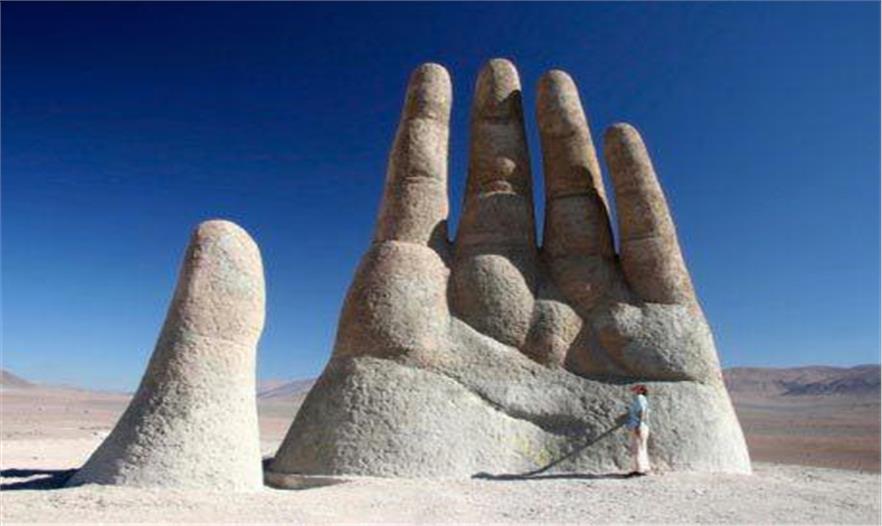 在南美洲智利的阿塔卡馬沙漠里,有一個非常獨特的建筑,遠遠望去,仿佛是一只從沙漠里緩緩伸出的手。離它越近,感覺它似乎也越來越大,仿佛是有一個巨人正要擺脫沙子的束縛,從沙漠里一躍而出。“沙漠之手”由智利雕刻家Mario Irarrazabal創(chuàng)作而成,位于茫茫的大漠之中。如果有機會去阿塔卡馬沙漠。一定不要錯過這只“沙漠之手”哦。