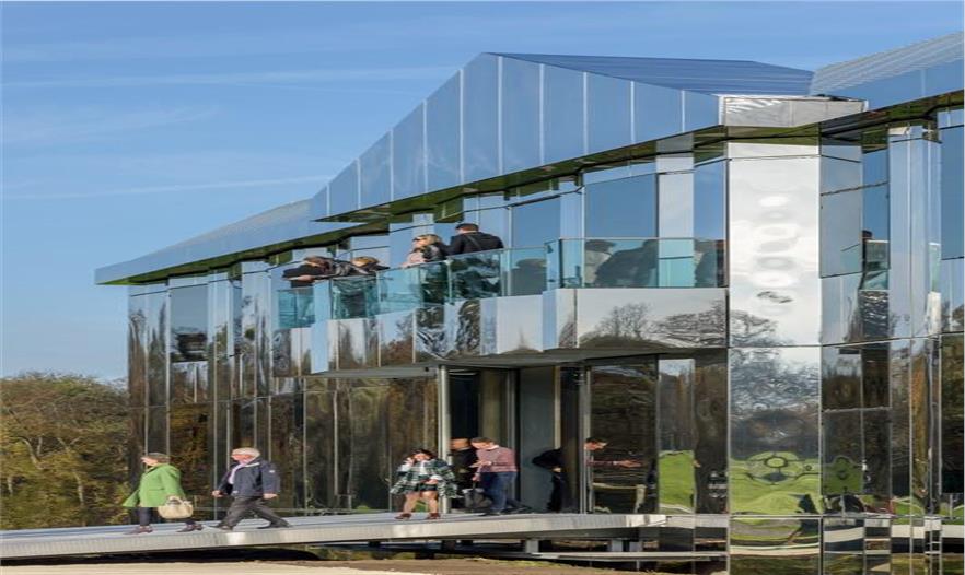 最后一次戰(zhàn)爭(zhēng)之后,倫蒂利城堡改建成當(dāng)?shù)胤ㄌm西風(fēng)格的建筑,盡管比原有建筑規(guī)模小了點(diǎn),但倫蒂利城堡遺失了自己的歷史價(jià)值和地理位置的優(yōu)越感。這個(gè)項(xiàng)目復(fù)興了這兩個(gè)方面,運(yùn)用褶狀、磨光的不銹鋼鏡面包裹成第二層表面,來反射和折射出公園的景觀,擔(dān)當(dāng)一種音箱的效果。