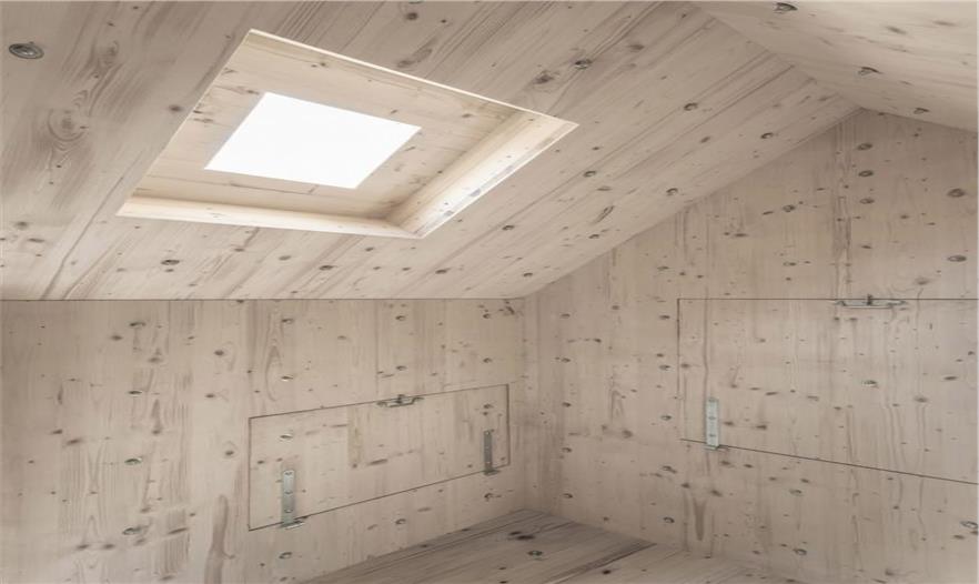 這個小木屋足夠一個人的生活空間,隱藏在一個預制的混凝土石頭當中。參照瑞士隱秘城堡的悠久傳統(tǒng),這個項目還融入了阿爾卑斯山高度城鎮(zhèn)化的景觀。