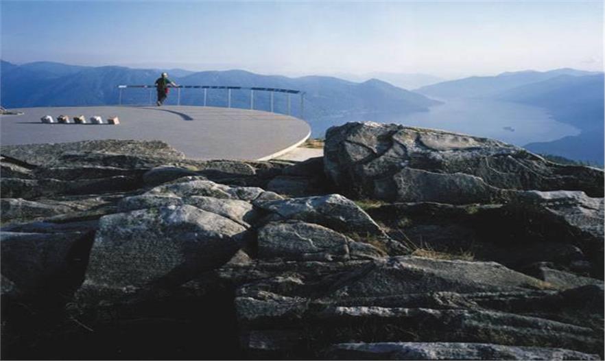 在2000年,前往卡爾達(dá)達(dá)的空中纜車翻新之后,保羅•布基在洛迦諾上方的山頂上設(shè)計(jì)了一個新景觀項(xiàng)目。卡爾達(dá)達(dá)觀景臺是一系列不同建筑結(jié)構(gòu)中的一部分,是如何把功能性項(xiàng)目融入到像阿爾卑斯山這樣奇異景觀中的一個精彩案例,而且僅使用石頭、鋼鐵和混凝土,就創(chuàng)造出動人心魄的景觀。