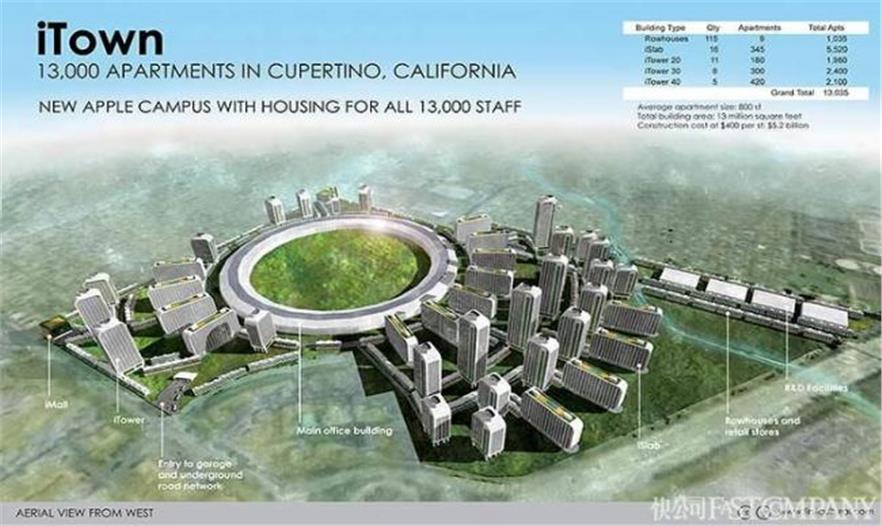 歡迎來(lái)到i-Town。藝術(shù)家將谷歌、Facebook、蘋果和電子藝界(Electronic Arts)等技術(shù)公司設(shè)想為自給自足的城市樞紐。