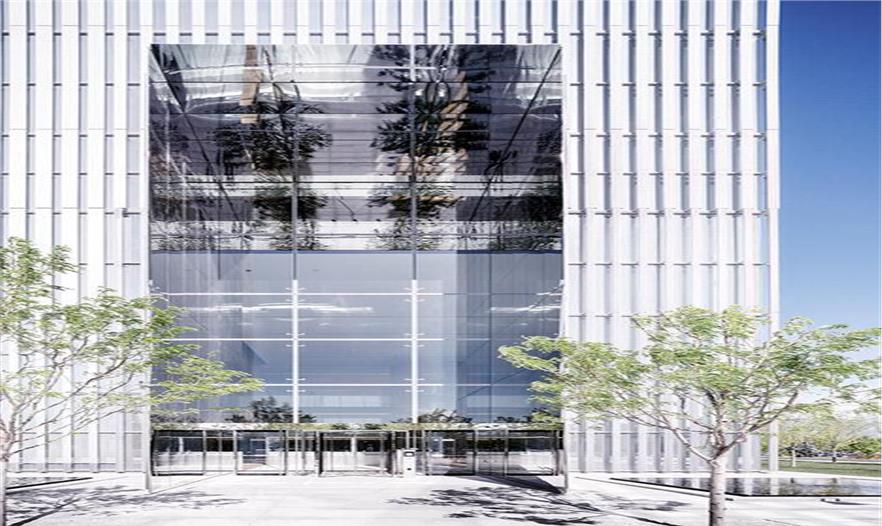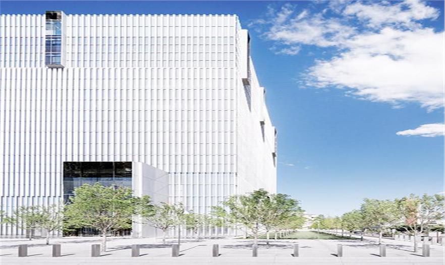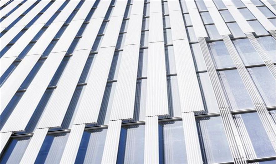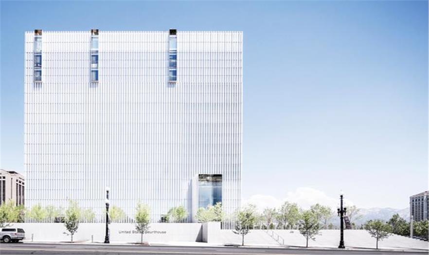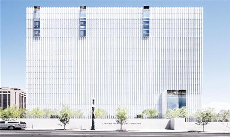 鹽湖城法院日前剛剛獲得了2015年度美國建筑師協(xié)會建筑設(shè)計大獎。其設(shè)計者是托馬斯•斐佛建筑事務(wù)所。該建筑的外立面非常有特色,白色垂直的遮陽板遠處看去像是給大樓掛的白色窗簾。這些白色垂直遮陽板均是鋁制的,可以根據(jù)太陽角度進行調(diào)節(jié),為大樓提供遮陽降溫的效果。設(shè)計師說:“在設(shè)計時,我們力圖反映出美國司法系統(tǒng)的象征,它必須是強烈的、標志性的、透明的和平等的。”