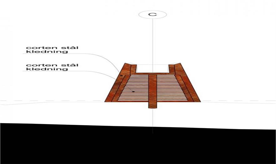 這個(gè)雕塑裝置是為Stokke的Sti For Øye雕塑公園設(shè)計(jì)的,放置在奧斯陸南方的西福爾郡橡樹森林中。和景觀設(shè)計(jì)師兼教授的雷納•斯坦格合作建造用于林地步道的基礎(chǔ)設(shè)施,來(lái)觀賞藝術(shù)家們的作品,所以桑德斯提議了一系列的鋼鐵和木制通道,建在區(qū)域的最高點(diǎn)上,朝東面向Slottsfjellet或是城堡石。這個(gè)設(shè)計(jì)理念是建于地面之上,成為高架觀景臺(tái)。