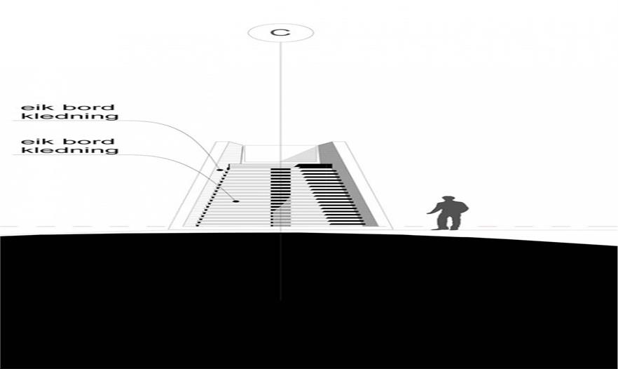 這個(gè)設(shè)計(jì)是從開始的20個(gè)方案中挑選出來(lái)的,桑德斯稱這個(gè)過程為“達(dá)爾文主義”,適者生存。這個(gè)項(xiàng)目展現(xiàn)出獨(dú)特的體驗(yàn)經(jīng)歷,外層是用生銹的四色的柯爾頓鋼包裹,和軟景觀形成對(duì)比,但隨著游客的前進(jìn)上升,內(nèi)部表層中的木制包層會(huì)營(yíng)造出溫馨的環(huán)境來(lái)映襯森林。
