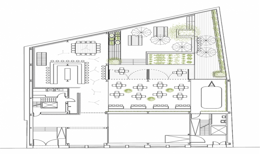 48城市花園位于雅典Ileana Tounta當(dāng)代藝術(shù)中心的第一層,是個(gè)植被繁茂的花園,有190平方米,以特色的木制雕刻景觀為特色,有多層次的座位區(qū)、酒吧吧臺、花盆以及用來種植蔬菜、水果和藥草的園圃。