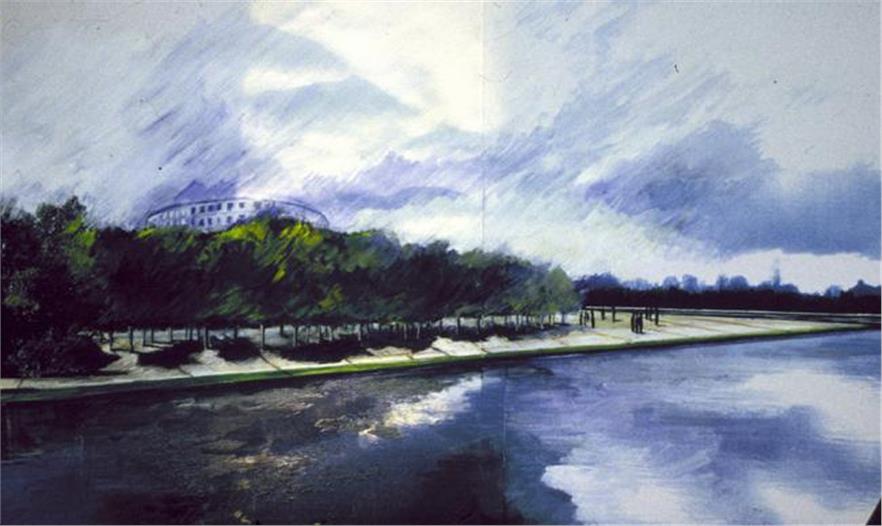 工業(yè)革命為一些最具破壞力的污染創(chuàng)造了條件。這些污染在二次世界大戰(zhàn)及其后的快速經(jīng)濟(jì)復(fù)興期間變本加厲。生態(tài)運(yùn)動(dòng)在過(guò)去和現(xiàn)在都是一種必須的回應(yīng)。項(xiàng)目位于一個(gè)曾經(jīng)受到汽油廠重度污染的基地,這也讓我們只能從生態(tài)的角度來(lái)回應(yīng)這個(gè)問(wèn)題。把受污染的泥土挖走,只會(huì)在別的地方制造新的問(wèn)題,這是不可行的。因此我們計(jì)算過(guò)填挖土方平衡,引入新的土壤代替受污染的土壤,保持建筑周?chē)F(xiàn)有的地面水平,并用多出來(lái)的土壤打造新的起伏地形。公園的使用是兩方面的,它既是一個(gè)綠色的自然環(huán)境,又是一個(gè)有各種室內(nèi)外活動(dòng)的文化中心。中央長(zhǎng)廊“軸心”把市政廳經(jīng)過(guò)中間的各種空間,與城市藝術(shù)宮連接起來(lái)。相鄰的不同空間給了中心各種不同的氣氛。原生植物與篩選過(guò)的物種互相搭配,表達(dá)了人類(lèi)需求與自然秩序之間的動(dòng)態(tài)。公園東面端頭的氣氛表現(xiàn)了一種更正式的傳統(tǒng)花園的形態(tài)。公園的中部區(qū)域反映了戰(zhàn)后把景觀作為為運(yùn)動(dòng),休閑和娛樂(lè)功能提供支持的觀點(diǎn)。西北面的Overbracker堆填區(qū)代表了一種不久之前對(duì)純粹的自然/生態(tài)手法的需求。西面端頭體現(xiàn)了當(dāng)前的想法,也就是要達(dá)到環(huán)境的和諧,人類(lèi)也必須參與進(jìn)來(lái)。