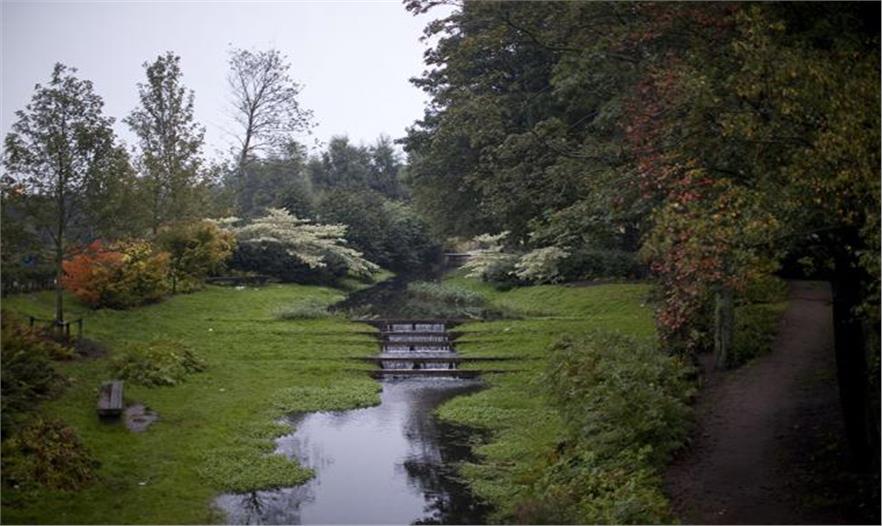 stone-lined lake 石材鋪就的線性淺湖,冬季可作為冰場(chǎng),夏季抽干可作為活動(dòng)場(chǎng)地,有水時(shí)也是觀景和親水好去處。