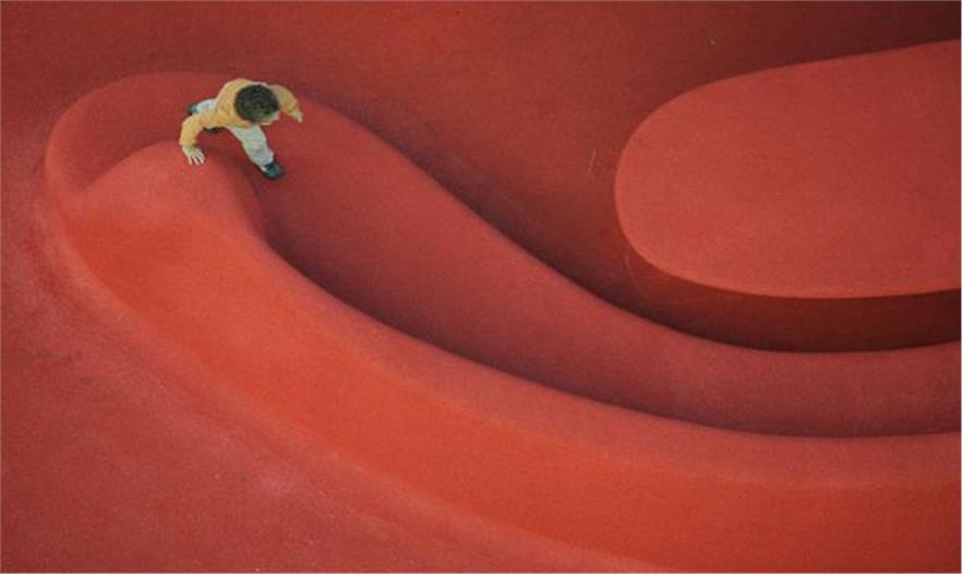 “Stadt”在德語中是“公共”的意思。所以,Stadtlounge廣場正如它的名字一樣是個城市休閑區(qū)。大量公共空間填補了建筑之間的空閑空間。不同的區(qū)域有不同的功能、結構和形狀。讓這些空間真正有連接感的是材料的使用。人行道和休閑空間是由紅色、純色的橡膠顆粒覆蓋,而道路和活動區(qū)是由紅色的瀝青覆蓋。材料的使用與運動設施緊密相關,減緩了運動氛圍,產(chǎn)生了一種新的設計概念,創(chuàng)造了新形式和設計的可能性。