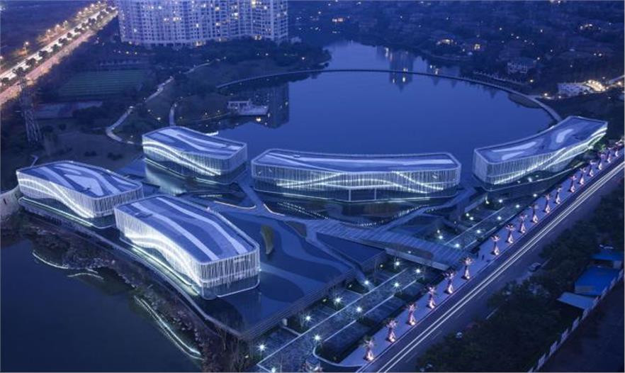 在澳大利亞建筑事務(wù)所Hassell設(shè)計(jì)的中國(guó)棕櫚島項(xiàng)目中能發(fā)現(xiàn)水特別廣泛的應(yīng)用。棕櫚島位于重慶青年水庫(kù)和棕櫚泉地質(zhì)公園湖沿岸,它包括五個(gè)曲線形餐廳建筑,看起來像群島中的島嶼浮在水面。顧客能夠欣賞湖泊和圓形“水景庭院”通過無邊界水池連成一體的美景。建筑物表面是玻璃和白色陶管,白天在日照下亮光閃閃如同在水面跳躍,晚上由于表面融合的燈光能看到迷人的反射。