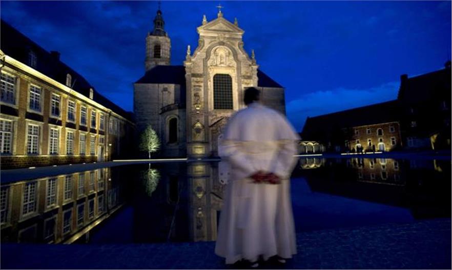 建筑師OMGEVING設(shè)計(jì)的類似的平靜水景,位于比利時(shí)迪斯特修道院廣場(chǎng)前,是典型的當(dāng)代城市水景,它另一個(gè)用途是映射巴洛克教堂建筑。