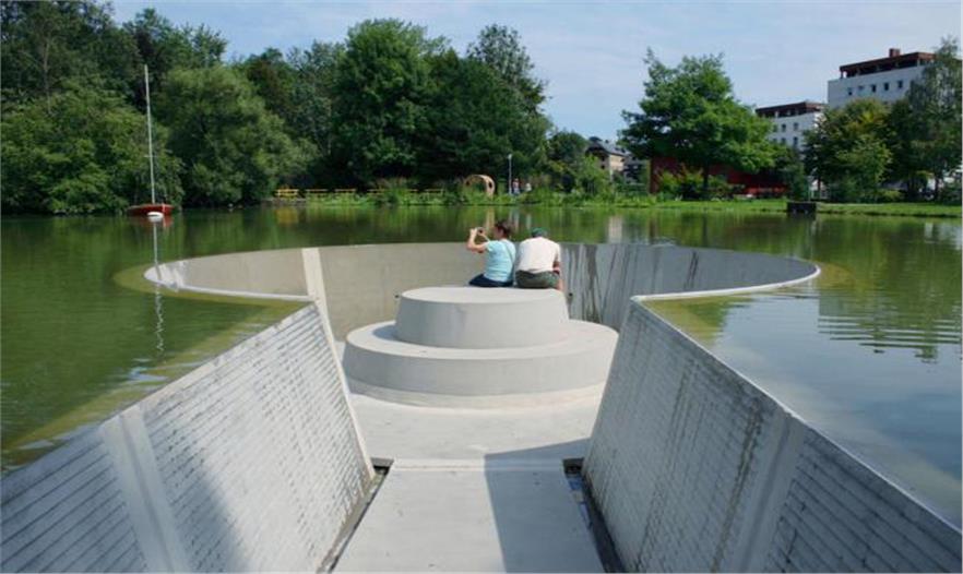 瑞士建筑師Westpol設(shè)計(jì)的位于奧地利Vöcklabruck的特殊觀光臺(tái)看起來更有沉浸感。游客可以隨便走到湖中,通過兩面有墻的斜坡到達(dá)一個(gè)圓形的觀光臺(tái),在設(shè)計(jì)的環(huán)繞式長(zhǎng)凳上凝視水景和林地。它讓人印象深刻的想起藝術(shù)家Richard Wilson的傳奇作品<<20:50>>,他在1987年安裝了類似的結(jié)構(gòu)。但與其利用漆黑的機(jī)油帶來駭人的效果相比,Westpol的項(xiàng)目則營(yíng)造了一個(gè)詩(shī)情畫意的田園。