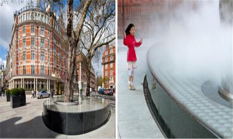 建筑師安藤忠雄和布萊爾業(yè)務(wù)協(xié)會(huì)合作設(shè)計(jì)的倫敦梅菲爾區(qū)水景綠樹環(huán)繞,創(chuàng)造了城市綠洲。它還周期性噴發(fā)水霧,帶給人印象深刻的空氣效果。