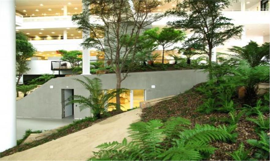Bureau B+B事務(wù)所和ADP architects事務(wù)所與建造公司Ambius和Konijnenberg合作發(fā)展了這個(gè)天然的生物群落,使受氣候控制的室內(nèi)花園成為Achmea保險(xiǎn)公司的入口。