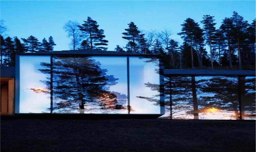 大型的玻璃墻位于起居室和餐廳內(nèi)。玻璃的框架進(jìn)行了精心的設(shè)計,在室內(nèi)無法感覺到它的存在,這樣就與自然有了更加直接的聯(lián)系。