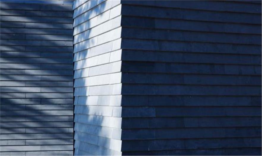 從外面看,這個小屋更接近于長方形結(jié)構(gòu),墻壁和屋頂都附有20毫米的玄武巖石塊,形狀與挪威傳統(tǒng)的木質(zhì)覆蓋層相似。