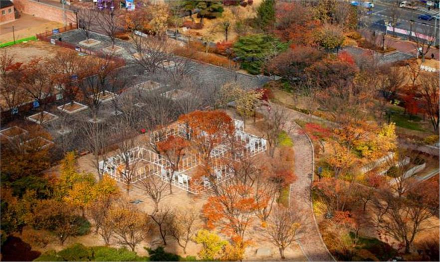 [Crossing Dimensions Of Time]是個(gè)戶外照片展覽館,建在韓國(guó)首爾Seodaemun獨(dú)立花園的中心。